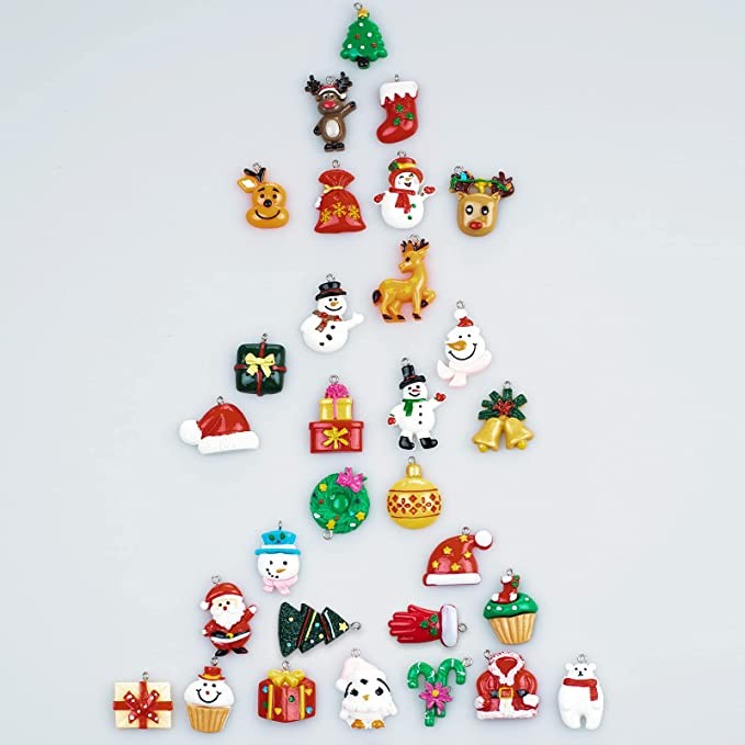 30 Pack Mini Resin Christmas Ornaments for Christmas Tree, Rustic Tiny Christmas Miniature Hanging Ornaments Resin Small Christmas Figurines for Xmas Party