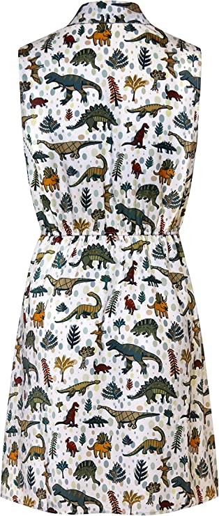 LaVieLente Custom Sleeveless Shirt Dress Lazy Dress Fox Dress Dog Dress Above Knee Length With Elastic Waist Design, Dinosaur, Small