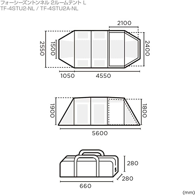 Tenfactory Four Seasons Channel 2 Room Tent L TF-4STU2-NL Beige 560×255×190(H)cm