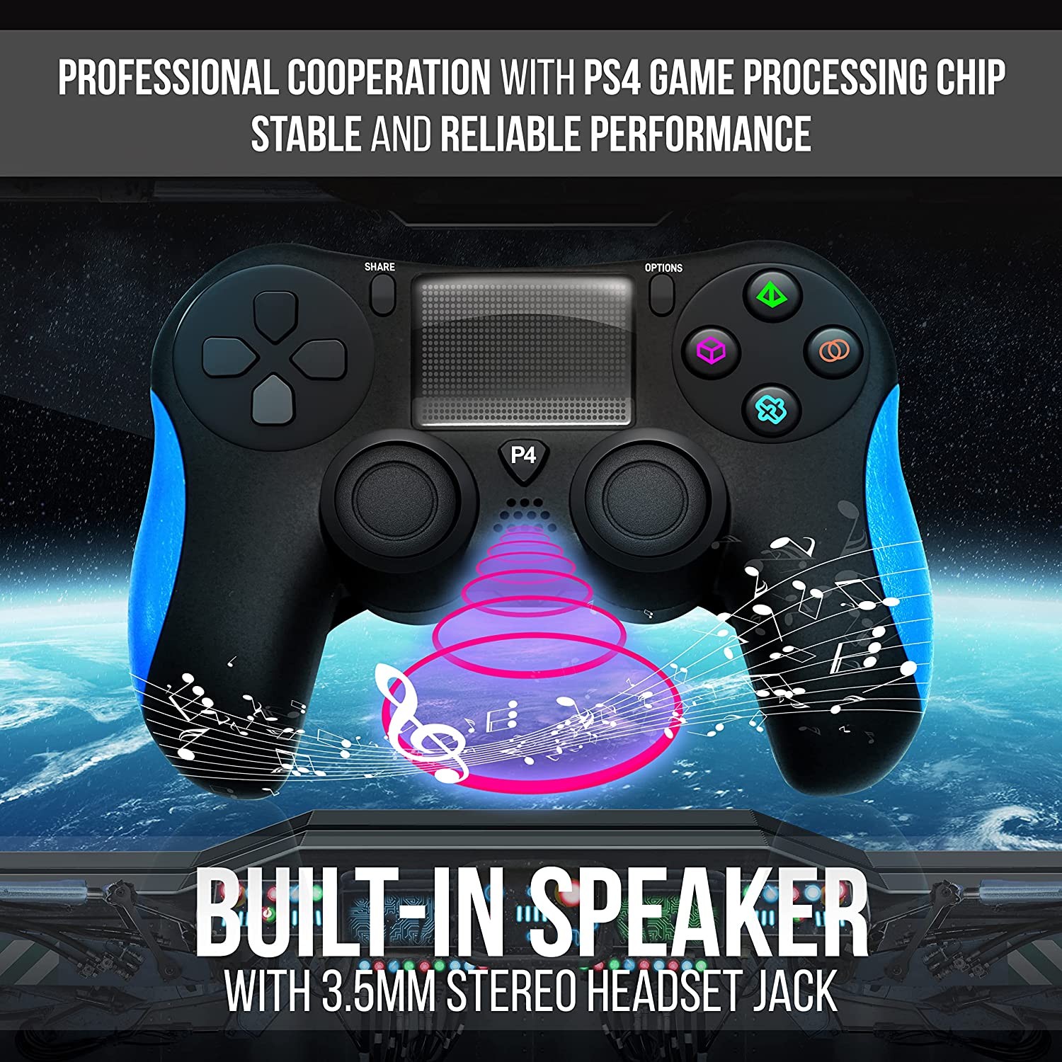 • Ergonomic Design: This game console controller features professional ergonomic design for PS 4 controller, optimized gamepad button layout and surface rubber paint treatment to improve comfort even during long gaming sessions.