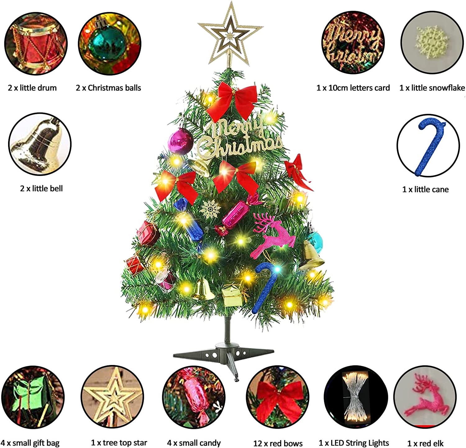 • ✔Package Includes: This Christmas tree set includes a Christmas tree, many Christmas tree ornaments and light strings.
