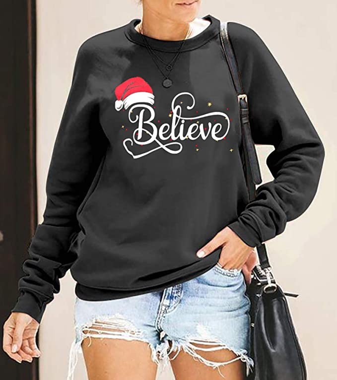 • Design Features: Christmas believe sweatshirt, cute Christmas top for women, women's long sleeve letter print pattern sweatshirt, round neck design, no tight neck, casual long sleeve pullover, suitable for spring, fall or winter, no matter you Wear it and you'll get tons of compliments.