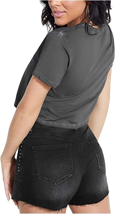 GUESS Cotton Lip Graphic Cropped T-Shirt, Dark Black Multicolor XL