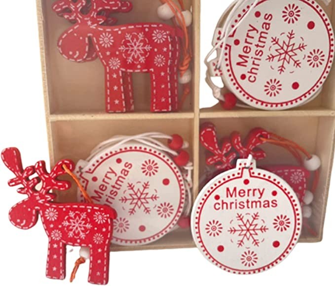 Color:Red and white 24 Pcs 24 Pcs Wooden Christmas Ornaments Set Wood Christmas Tree Ornaments Kit with Wooden Gift Box Wood Christmas ornaments for Arts and crafts DIY, Craft Wood kit Crafts Christmas Ornaments An ideal Christmas Gift for your kids , family, friends, sister etc. These ornaments are made of natural wood, crafted with care, lightweight, and beautiful. Each hanging decoration also works as a fantastic background photo prop at parties. Applicable scene: shopping mall window, Christmas tree and other Christmas event decoration scenes The package includes: ◆ 6 x Snowman ◆ 6x house ◆ 24 x hanging rope ◆ 6 x snowflakes ◆ 6 x Reindeer