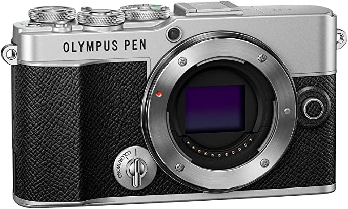 The body of OLYMPUS PEN E-P7 is silver
